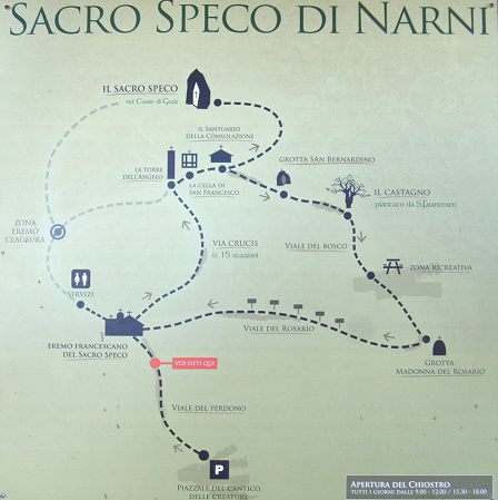 Il Sacro Speco di San Francesco è uno dei luoghi più significativi del francescanesimo. Questo importante Santuario, noto all’epoca come Eremo di Sant’Urbano, è situato nei pressi di Narni (TR), nell’omonima fraz. di S.Urbano, in prossimità della grotta (lo Speco) ove il Santo di Assisi soleva ritirarsi in preghiera e dove trascorse anche un periodo di malattia, durante il quale i frati costruirono per lui, accanto allo speco, una celletta in pietra con un letto in legno e un piccolo oratorio, per permettergli di raccogliersi in preghiera senza discendere fino alla chiesa.