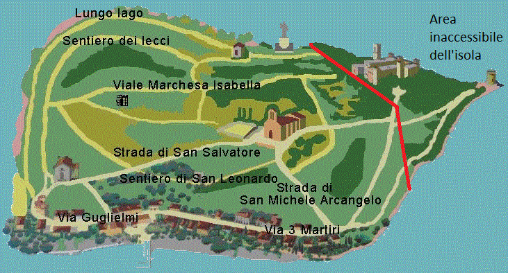 Punti d’interesse: Isola Maggiore / Via Guglielmi / Chiesa di San Salvatore / Torre-mulino di epoca romana / Chiesa di San Michele Arcangelo / Scoglio di San Francesco / Castello Guglielmi / Mulino a vento