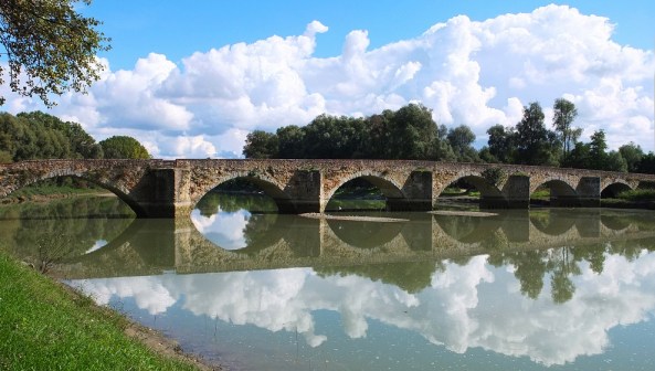A qualche chilometro da Arezzo, sulla strada Setteponti che conduce a Loro Ciuffenna, si trova il Ponte Buriano, un’opera architettonica romanica sorta sulle sponde dell’Arno tra il 1240 e il 1277. La sua robusta e possente struttura, che tutt’ora sopposta il traffico cittadino, gli ha permesso di resistere a numerose alluvioni nel corso dei secoli, nonché alla furia distruttiva della guerra.