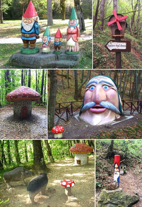 Non mancano poi le giuste leggende che contribuiscono ad amplificare l’atmosfera fantastica di questo luogo: si narra infatti che nei boschi circostanti il paese girino da secoli Fate e Gnomi e molti abitanti del borgo affermano di averne incontrato almeno uno nel corso della vita. Dalla fama di paese degli gnomi è nato un sentiero tematico per bambini (carino ma non eccezionale) che permette di conoscere la vita e la funzione benigna di questi piccoli amici del bosco.
