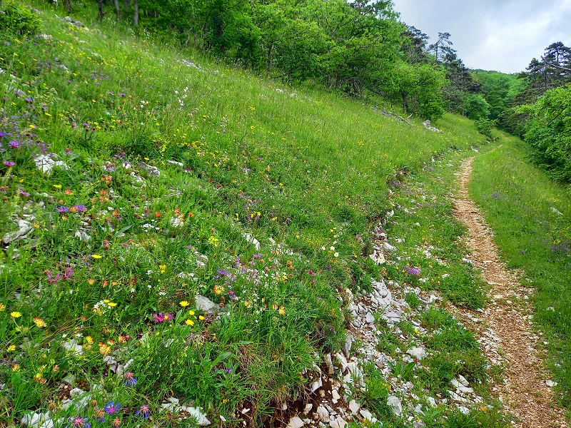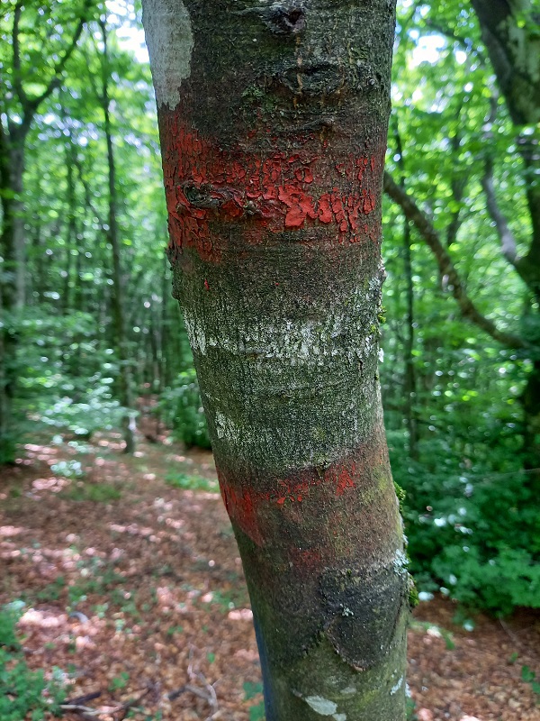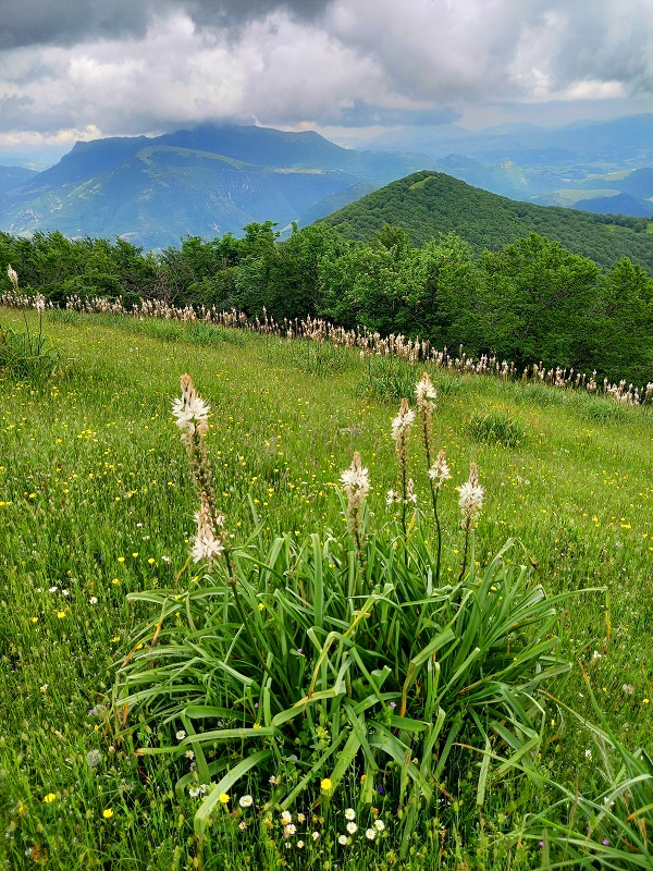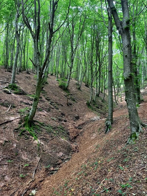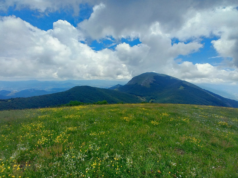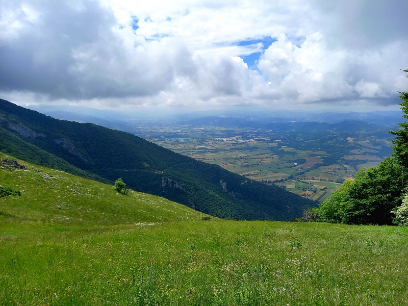 Si sale a sinistra per il sentiero 293, incontrando una serie di tornanti che rendono meno faticosa la salita tagliando il bosco di latifoglie alternato a conifere ed a radure, con un bel panorama sulle colline umbre.